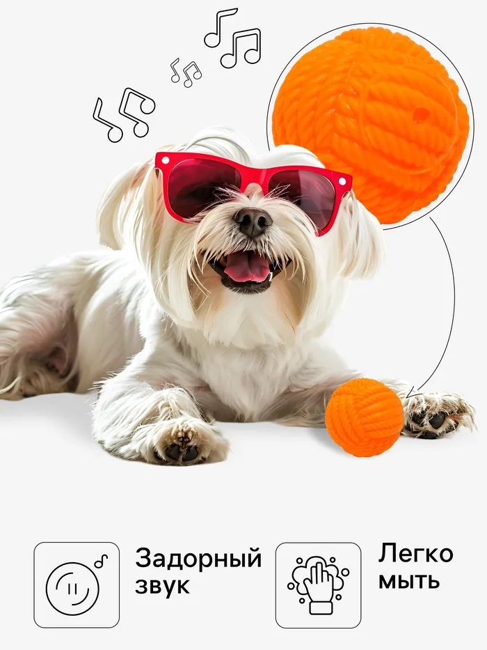 Игрушка для собак пищащая "Клубок ниток", 8 см, оранжевая — Характеристики