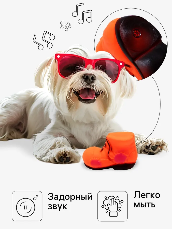 Игрушка изготовлена из безопасного материала и не предназначена для разгрызания. Во время игр виниловые игрушки можно жевать, благодаря этому они массируют дёсны и отчищают зубы собаки от налёта. Таким образом во время игр совмещается приятное с полезным.