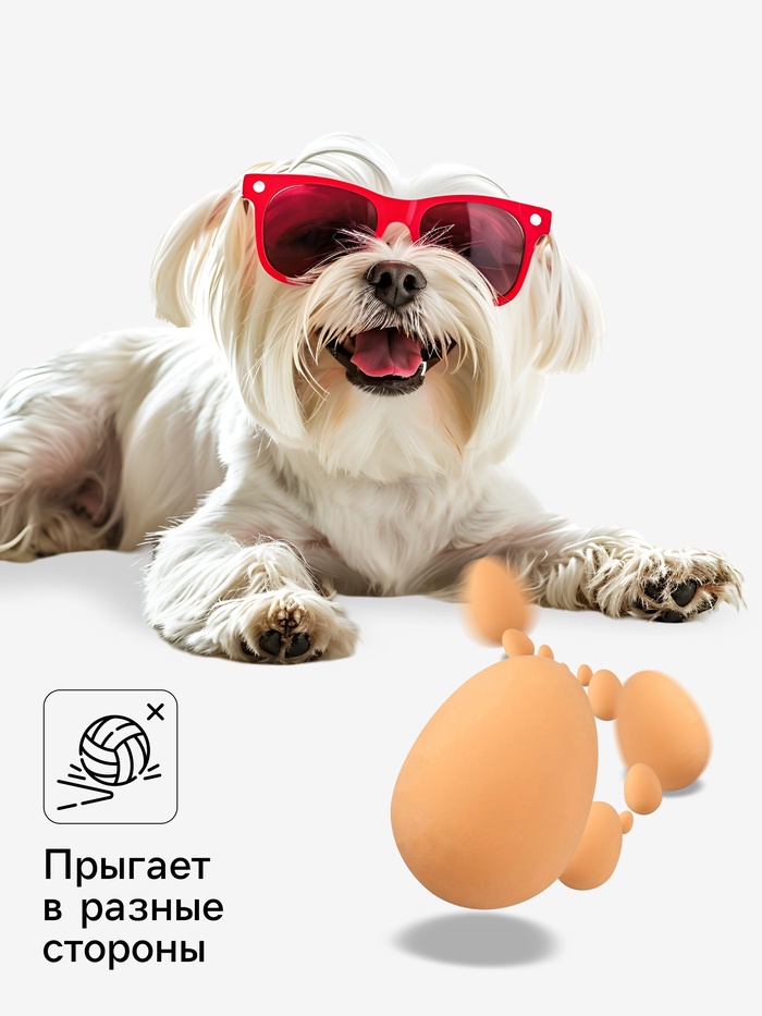 Как играть: Просто возьмите яйцо в руку и бросьте его перед собакой. Наблюдайте, как оно скачет и подпрыгивает, вызывая восторг у вашего питомца.