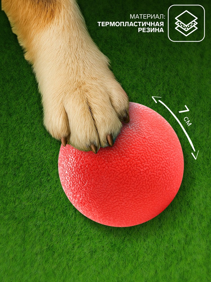 Надёжный спутник для игр и жевания! Красный резиновый мяч для собак, 7 см, из термопластичной резины — это цельнолитая игрушка без полостей и швов, созданная для активных псов средних и крупных пород. Простая форма, прочный материал и насыщенный цвет делают её практичным выбором для ежедневного использования дома и на прогулке.