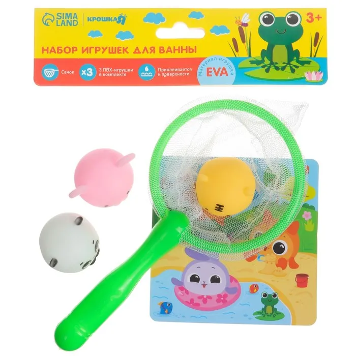 Игрушки для ванны Крошка Я «Кругляшики» в наборе сачок, 3 пвх игрушки