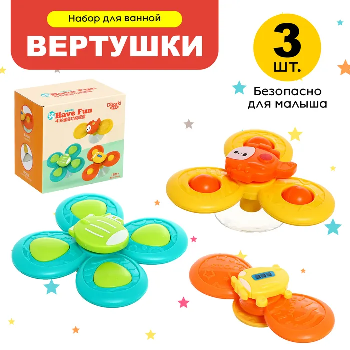 Спиннеры для купания на присосках «Транспорт», набор 3 шт.