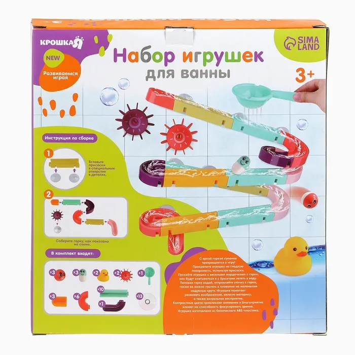 Игрушка для ванны Крошка Я «Водная горка», 22 детали, 8 игрушек, ковш, на присосках — Характеристики