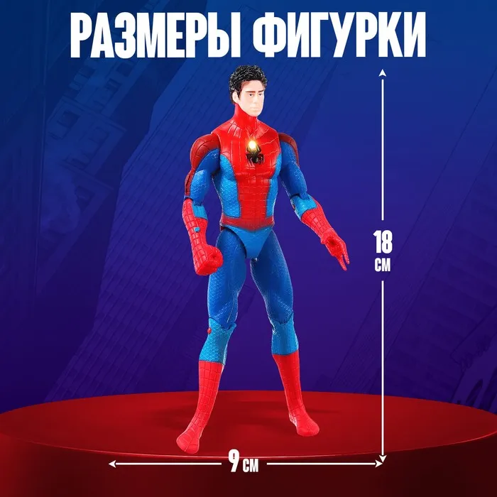 - Световой эффект – на груди загорается символ паука при нажатии кнопки.