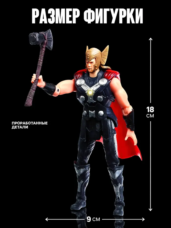 Почувствуйте мощь громовержца с детализированной фигуркой Тора! Этот легендарный герой из вселенной Marvel готов к сражениям с врагами, и теперь он может стать частью вашей коллекции.