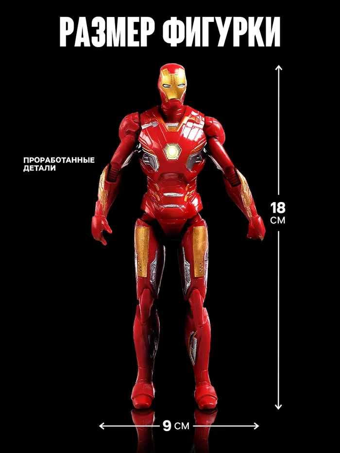Эта фигурка Железного Человека позволит вам почувствовать себя частью захватывающего мира Marvel. Детализированный костюм, съемная голова и подвижные элементы делают её идеальной для игры или коллекционирования. Добавьте к этому уникальный аксессуар и светящийся элемент на груди — и ваши игровые сцены станут еще более впечатляющими!