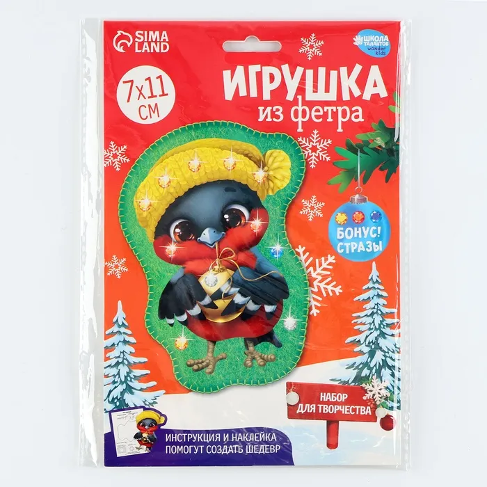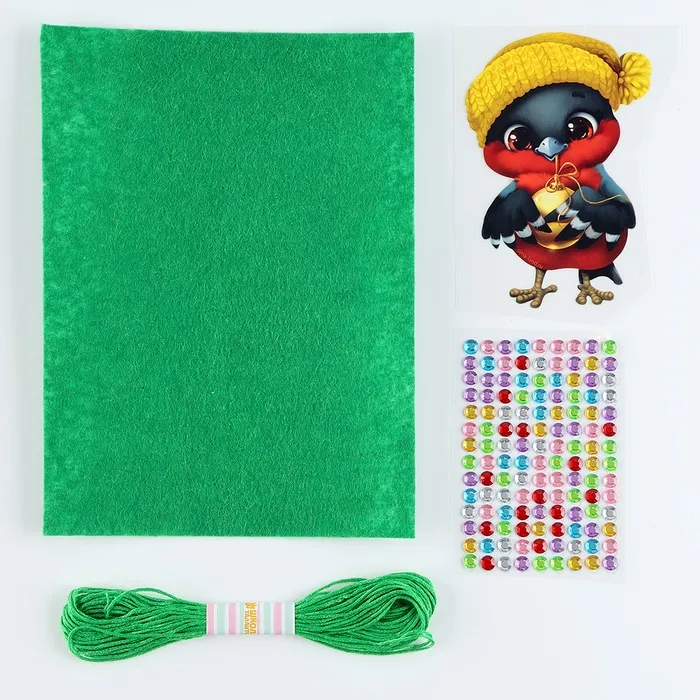 Игрушка из фетра своими руками на новый год «Снегирь в шапочке», набор для творчества — Характеристики