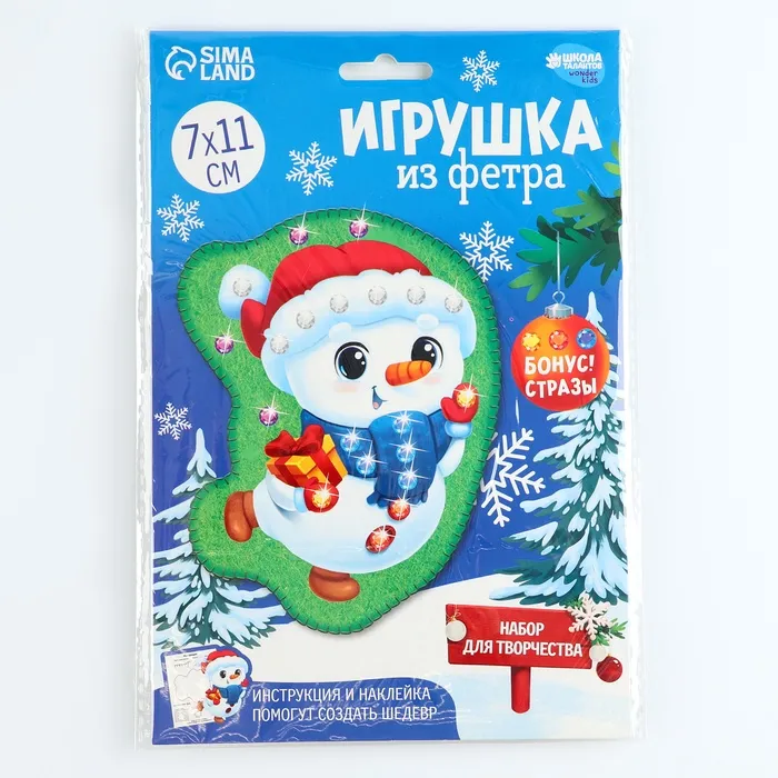 Игрушка из фетра своими руками на новый год «Снеговичок», набор для творчества — Характеристики