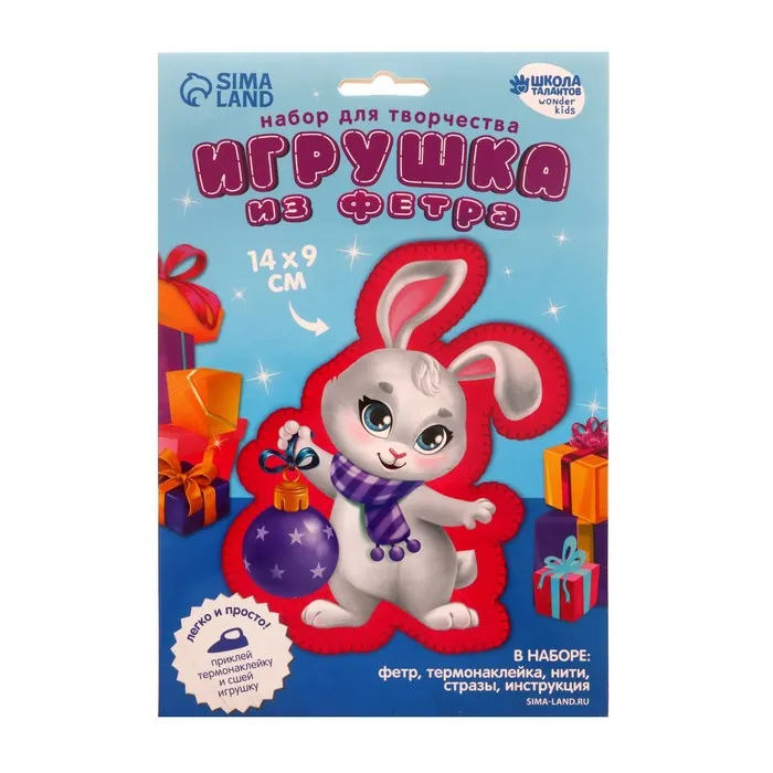 Игрушка из фетра своими руками на новый год «Зайка с игрушкой», набор для творчества — Характеристики