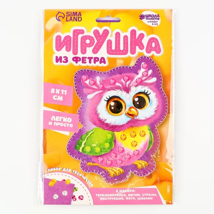 Игрушка из фетра своими руками с термонаклейкой «Сова», набор для шитья — Характеристики