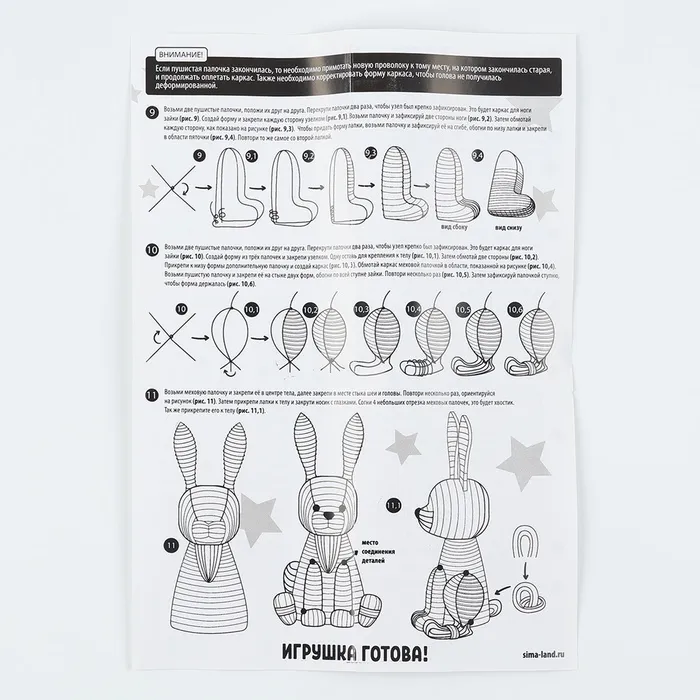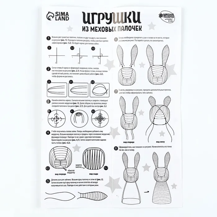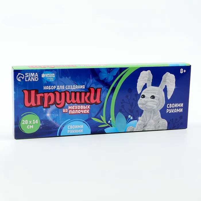 Размер игрушки 28 х 14 см.Количество палочек - 180 шт.Всё необходимое входит в набор.Возрастная категория 8+.Игрушка из меховых палочек станет отличным подарком для всех детей и взрослых.