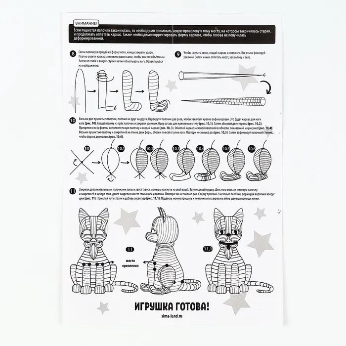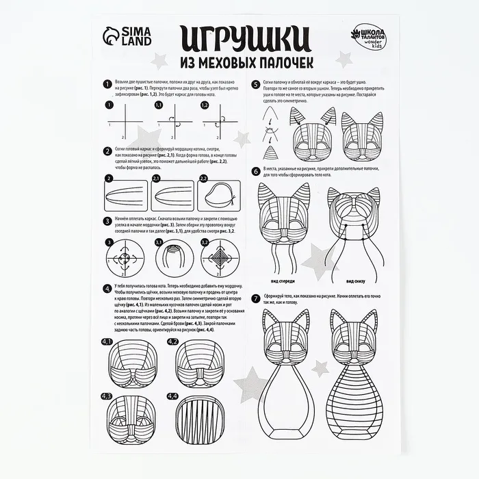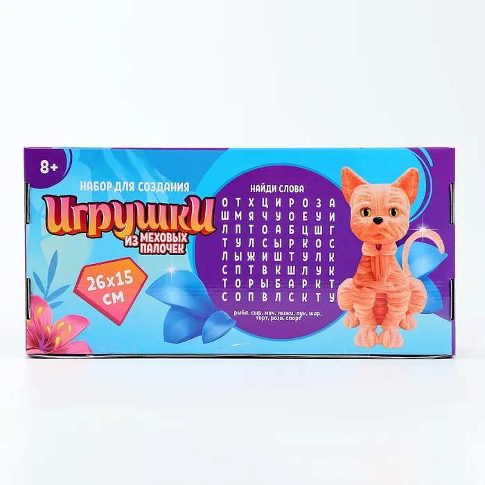 Размер игрушки 26 х 15 см.Количество палочек - 300 шт.Всё необходимое входит в набор.Возрастная категория 8+.Игрушка из меховых палочек станет отличным подарком для всех детей и взрослых.