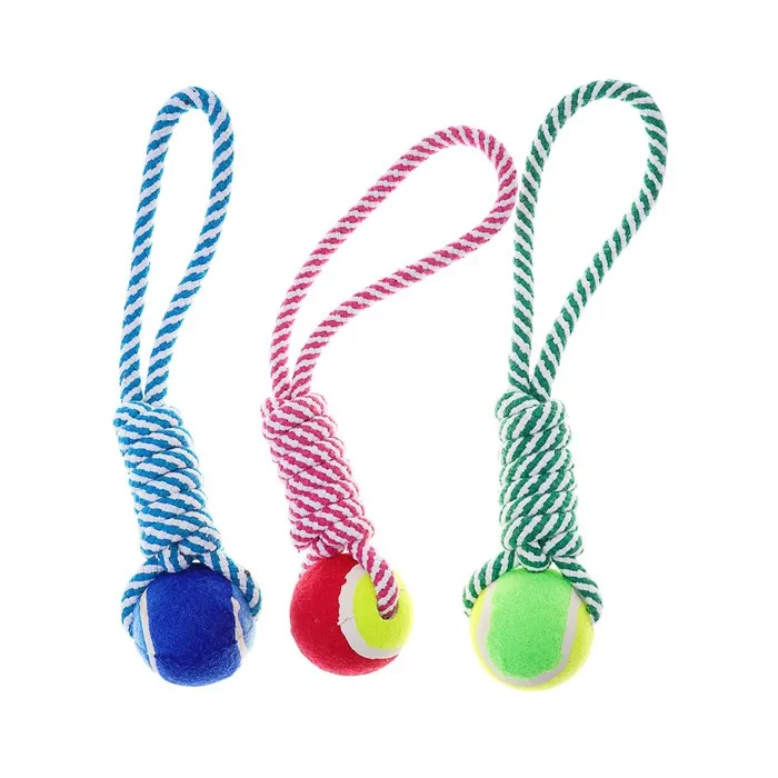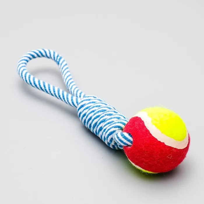 Игрушка канатная плетёная с мячом, до 130 г, до 33 см, микс цветов