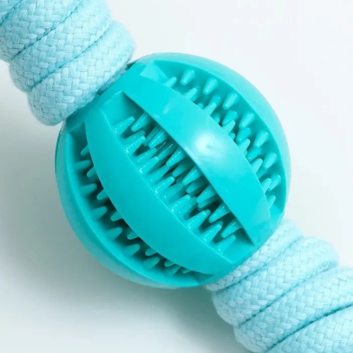 Игрушка канатная плетёная с мячом, до 35 см, до 115 г, мятная