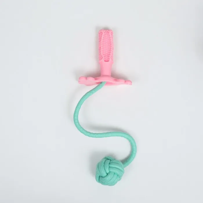 Игрушка канатная с зубочисткой и мячом "Хлыст", до 55 см, до 160 г, розовая/мятная