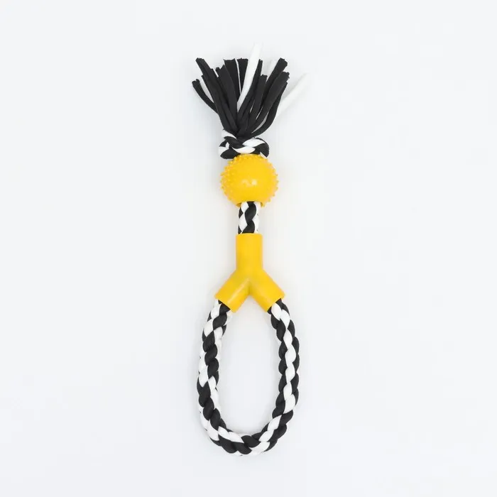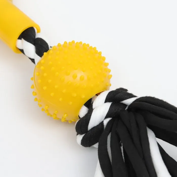 Игрушка канатная тренировочная с ручкой и мячом, до 125 г, до 31 см, чёрно-жёлтая серия