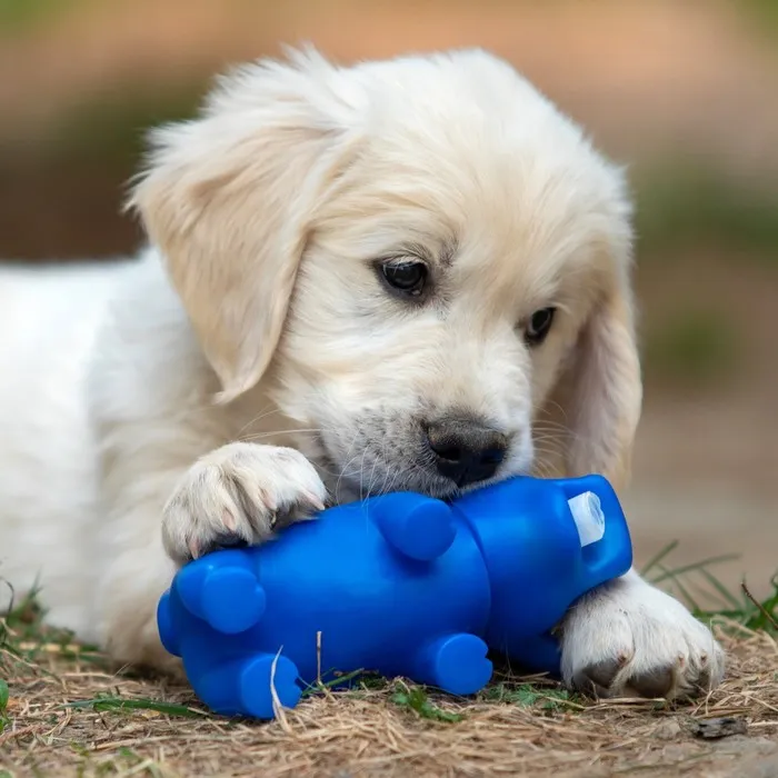 Игрушка изготовлена из безопасного материала и не предназначена для разгрызания. Во время игр виниловые игрушки можно жевать, благодаря этому они массируют дёсны и отчищают зубы собаки от налёта. Таким образом во время игр совмещается приятное с полезным.