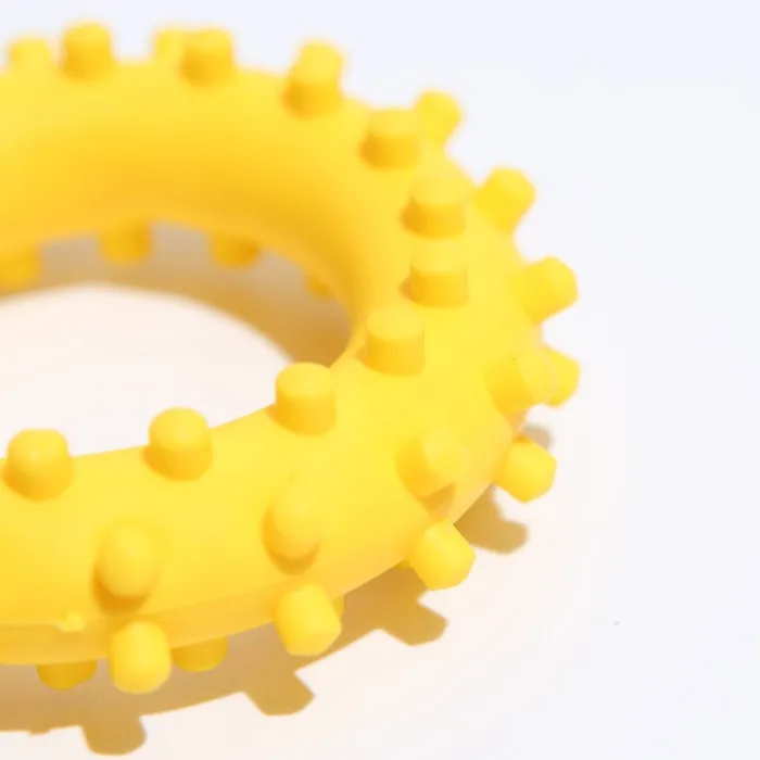Игрушка для собак Кольцо с шипами. Отлично подойдет как просто для игры с собакой, так и для ее дрессировки. Очень нравится питомцам именно из-за наличия шипов на кольце. Питомец пытается их разгрызть, а они , в свою очередь, оказывают прекрасный массаж десен. В Ваше отсутствие дома будет служить питомцу замечательным развлечением и спасет Ваши вещи от разгрызания. Игрушка для собак очень прочная и прослужит долго. Кольцо для собак сделано из прочного, но безопасного материала, идеальная первая игрушка для щенка. Грызунок для собак не тонет в воде и мало весит, что делает его отличным вариантом игрушки для дрессировки. Обязательно станет любимй игрушкой Вашего питомца.