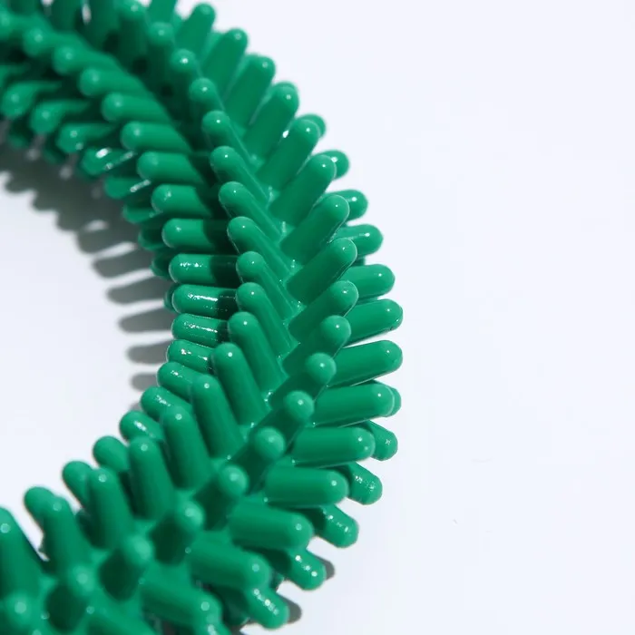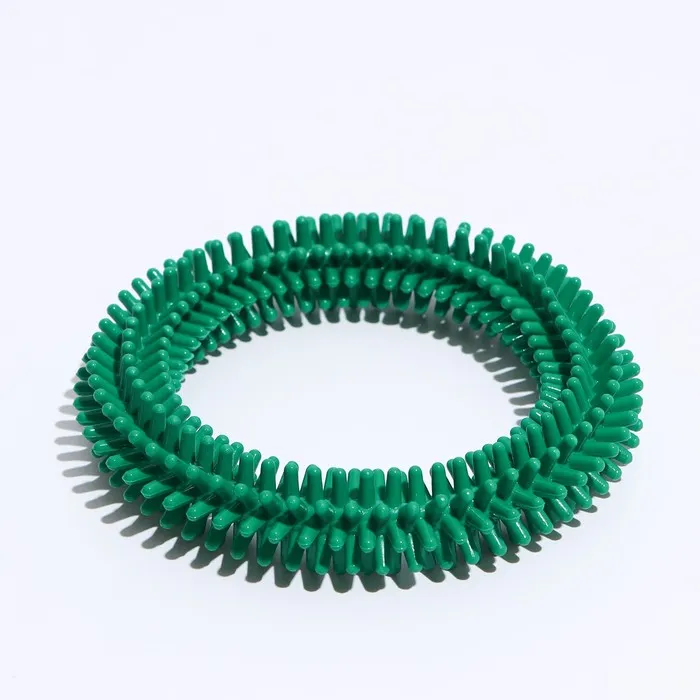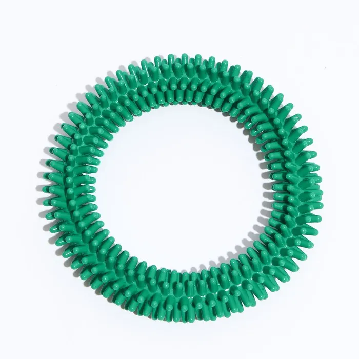 Игрушка для собак — простая вещь, которая объединяет сразу несколько функций. Развлечение для собаки, поддержание ее физической формы, и самое главное — качественное общение с хозяином. Когда вы бросаете своему питомцу кольцо с командой «апорт», это дает псу возможность показать себя с лучшей стороны. Зверь понимает и выполняет команду, демонстрирует свою скорость, получает заслуженную похвалу и награду в виде лакомства. Кольцо из прочного материала прослужит вашей собаке в качестве забавной игрушки долго. Шипы на кольце эффективно очистят зубы и дёсны собаки.