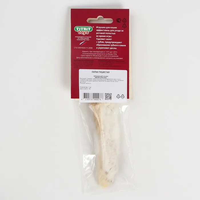 Игрушка-лакомство TitBit для кошек, кроличья лапка пушистая, 16 г — Характеристики