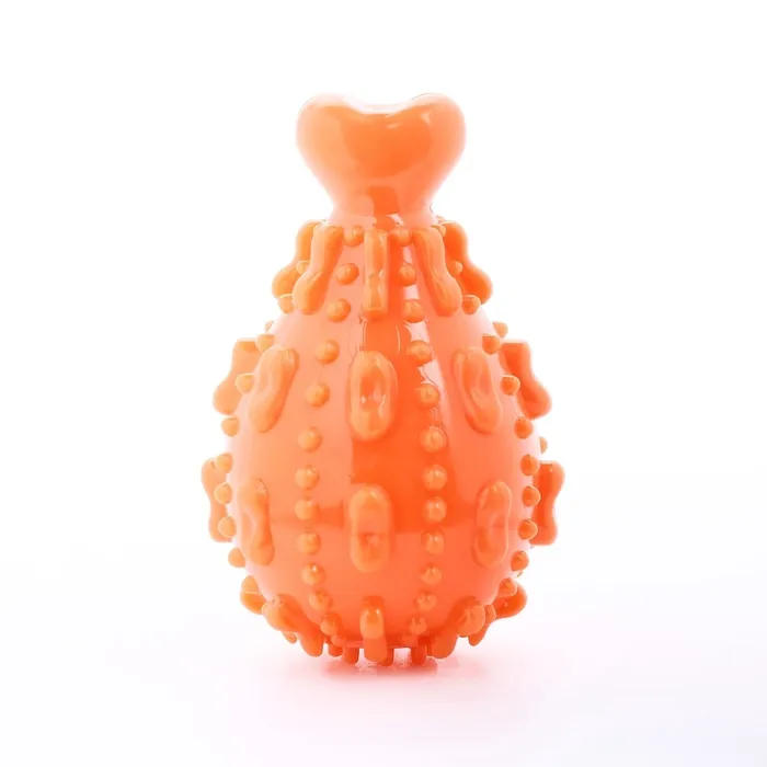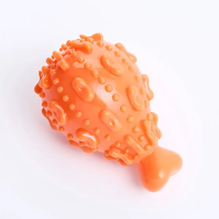 Эстетичный и яркий дизайн: Игрушка выполнена в насыщенном оранжевом цвете и имеет форму аппетитного окорока, который привлечет внимание вашего питомца и побудит его к игре.