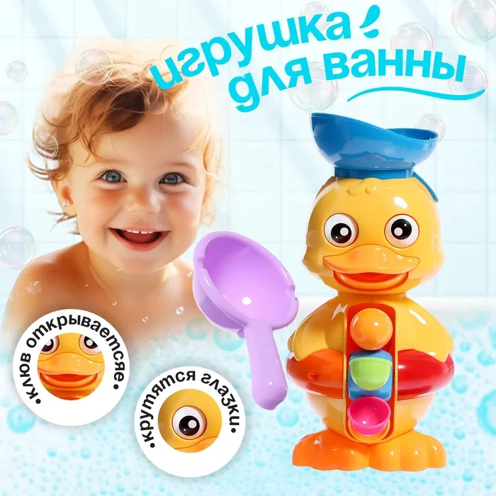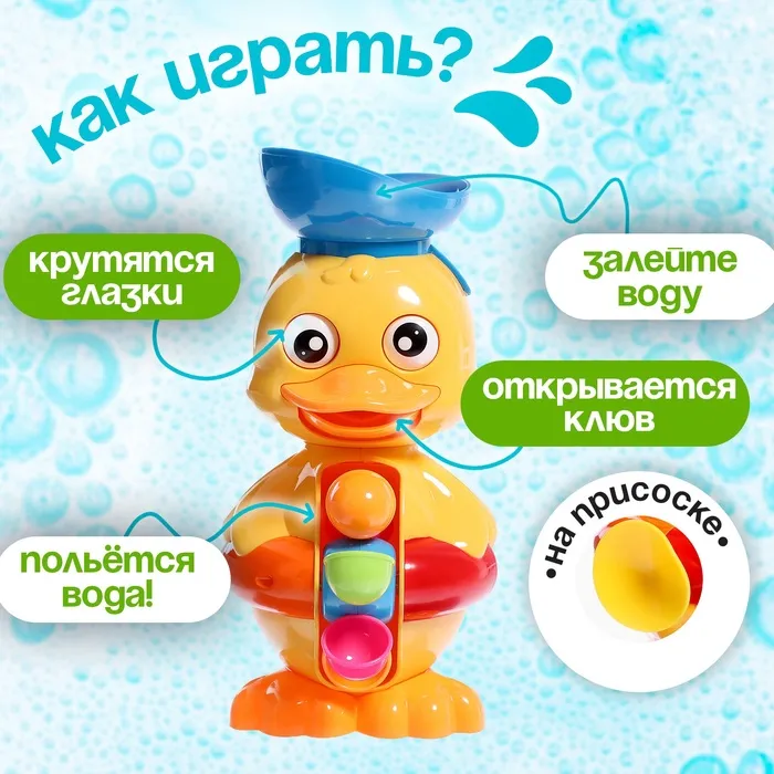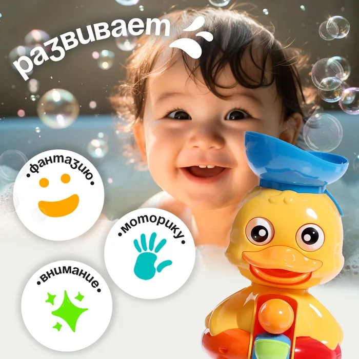 Водные процедуры превращаются в увлекательное приключение с утёнком. Игра с утёнком стимулирует тактильные ощущения, тренирует координацию движений и внимание.