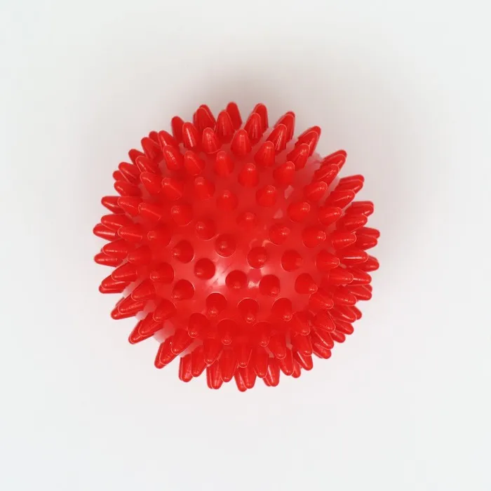 Мяч имеет приятные шипи для массированиЯ десен и механической чистки зубов от налета.