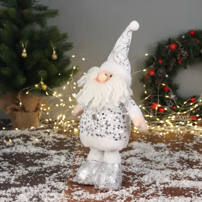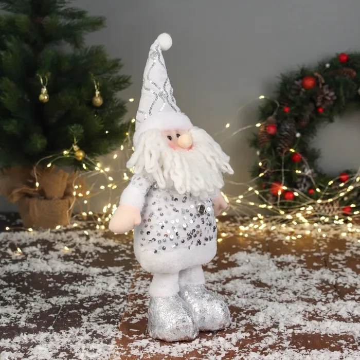 Мягкая новогодняя игрушка в виде Деда Мороза с блестящим эффектом станет ярким украшением праздничного интерьера или оригинальным подарком. Эта фигурка выполнена в стиле ар-деко, классике и скандинавском дизайне, что придает ей особую элегантность. Размер — 59×21 см или 40×21 см, она легко впишется в любой зимний декор, создавая атмосферу уюта и волшебства. Мягкое тело с мягконабивными частями обеспечивает приятные тактильные ощущения и долговечность. Наличие ног у Деда Мороза придает ему реалистичный силуэт, а его новогодний костюм с блестящими элементами подчеркивает праздничную тематику. Игрушка не оснащена подставкой и не требует питания, что делает её удобной для размещения в различных интерьерах.