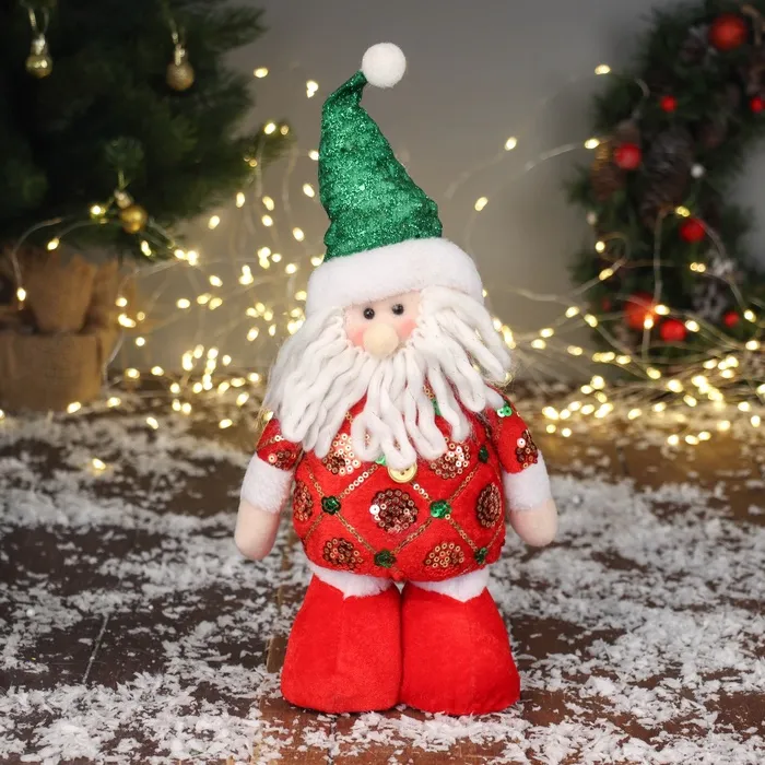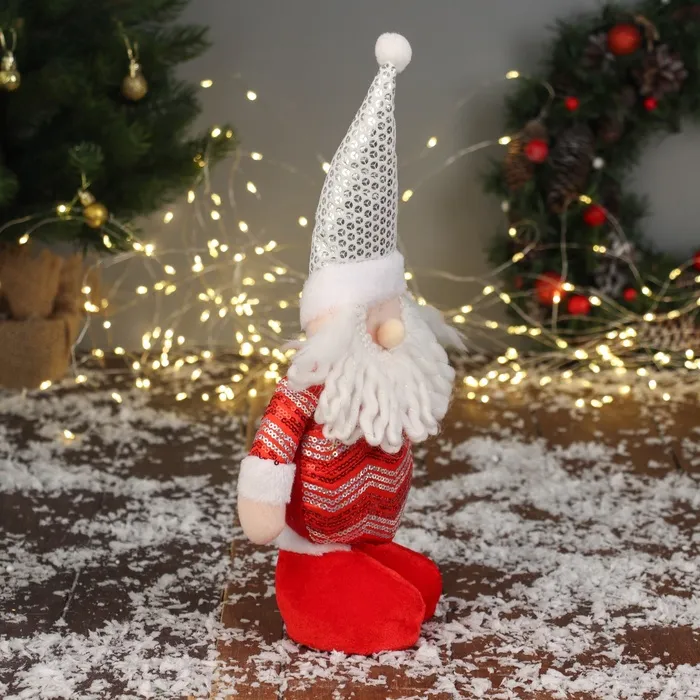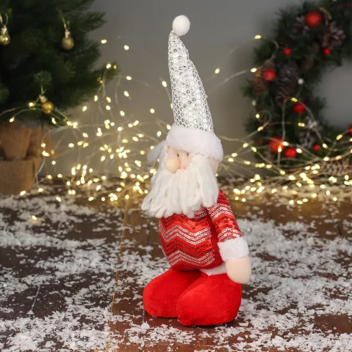 Игрушка мягкая «Дед Мороз в блестящем костюме» 35×16 см, красно-белый — Характеристики