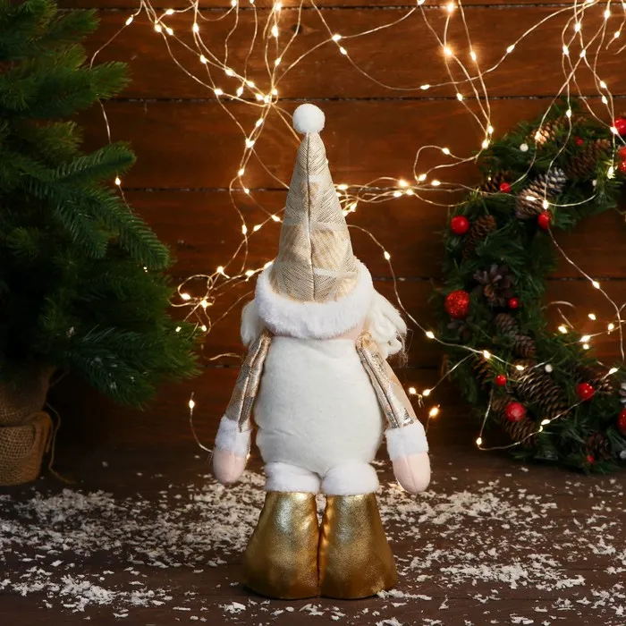 Игрушка мягкая «Дед Мороз в костюме с ромбиками» стоит, 15×30 см, золотистая — Характеристики