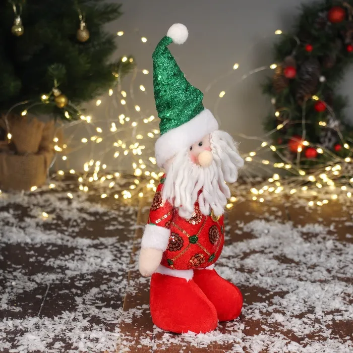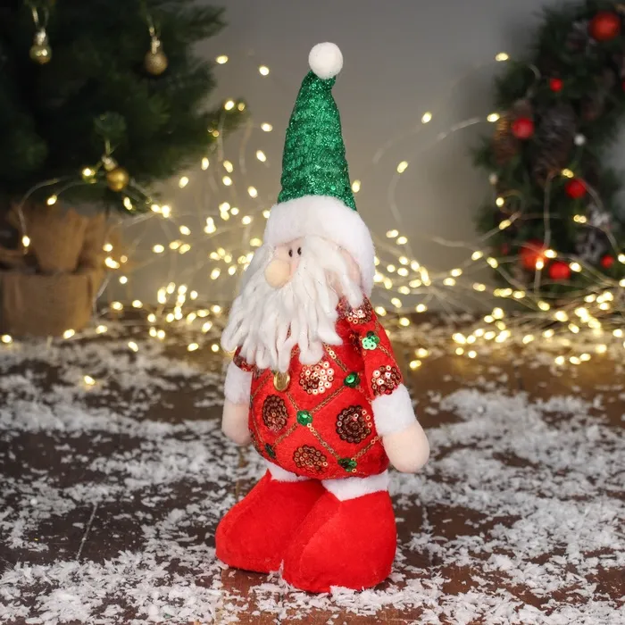 Игрушка мягкая «Дед Мороз в сияющем костюме» 34×17 см, красно-зелёный — Характеристики