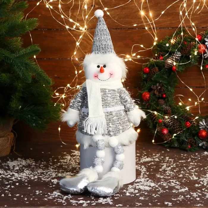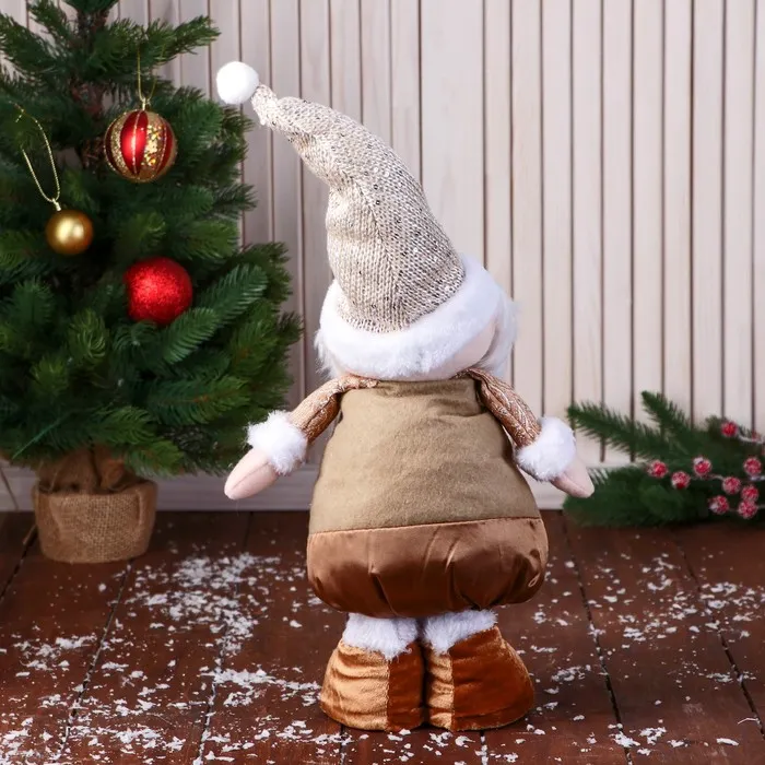 Игрушка мягкая «Дед Мороз в вязаном колпаке, длинные ножки» стоит, 70×13 см, коричневый — Характеристики