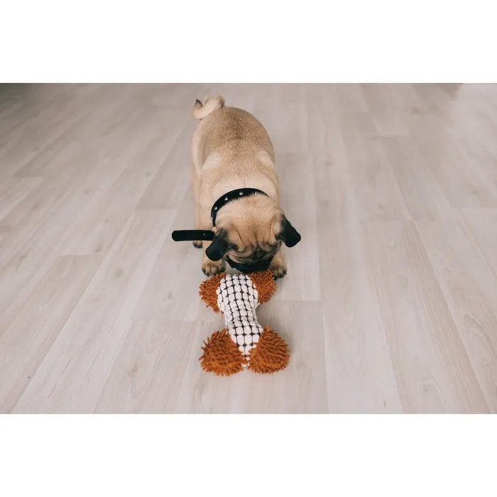 Мягкая игрушка для собак изготовлена из высококачественного текстильного материала с набивкой. Игрушка подойдет для активных игр с питомцем. Неабразивный, нетоксичный материал не ранит зубы и дёсны. Игрушка оснащена пищалкой для привлечения внимания.