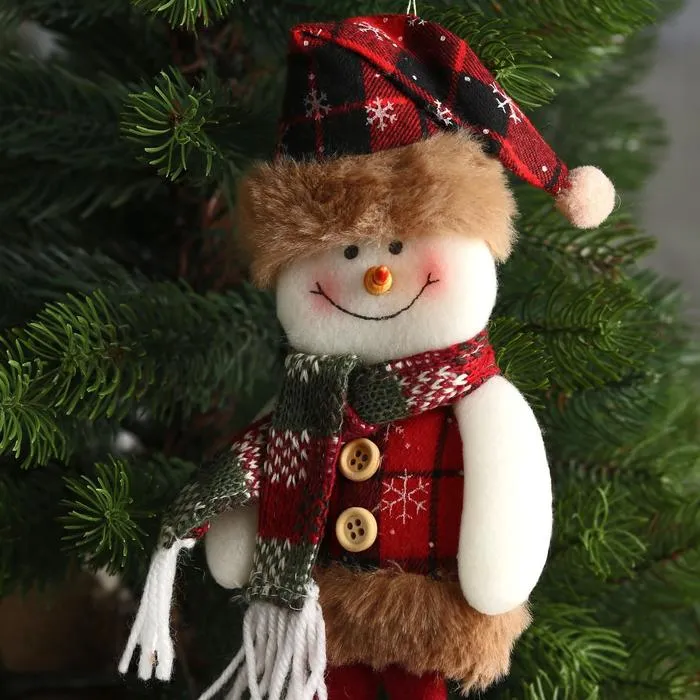 Игрушка мягкая «Снеговик в клетку» 8×29 см, красно-коричневый — Характеристики
