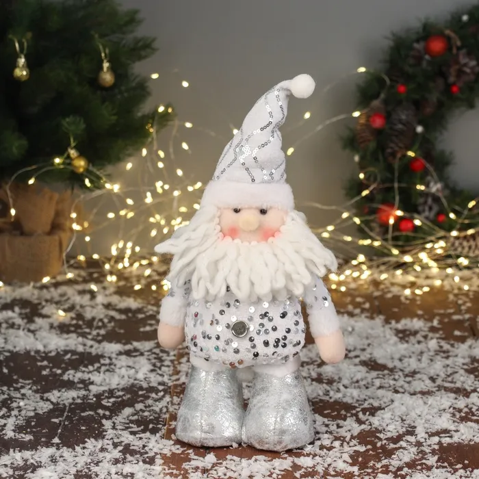 Мягкая новогодняя игрушка в виде снеговика в костюме со звёздами и колпаке станет ярким украшением зимнего интерьера или оригинальным подарком. Эта фигурка выполнена в стиле ар-деко, что придает ей особую элегантность и изысканность. Размер — 46 см в высоту и 19 см в ширину, она легко впишется в любой праздничный декор, создавая атмосферу уюта и волшебства. Мягкое тело с мягконабивными частями обеспечивает приятные тактильные ощущения и долговечность. Наличие ног у снеговика придает ему реалистичный силуэт, а его костюм со звёздами и блестящим колпаком подчеркивает новогоднюю тематику. Игрушка не оснащена подставкой и не требует питания, что делает её удобной для размещения в различных интерьерах.