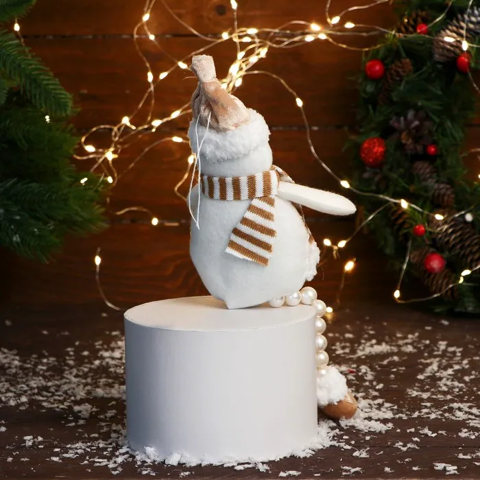 Игрушка мягкая «Снеговик в полосатом шарфе» 10×30 см, золото — Характеристики