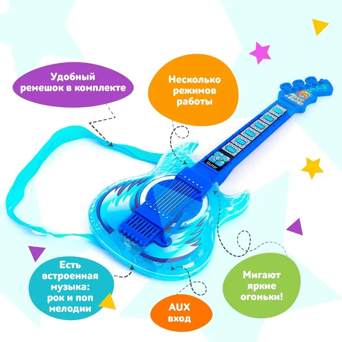 Играя с гитарой, ребёнок будет придумывать мелодии и подпевать любимым песенкам. Занятия способствуют развитию у малыша воображения, музыкального восприятия и мелкой моторики рук.
