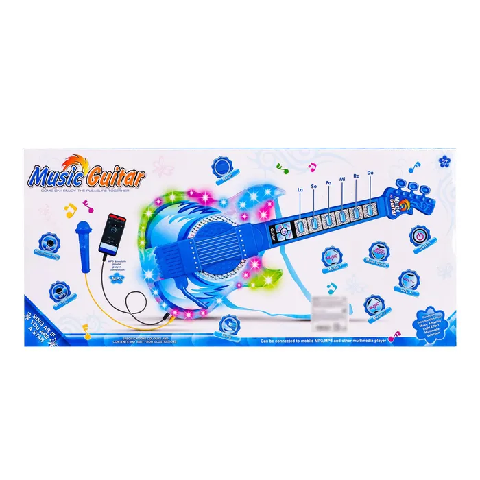 Играя с гитарой, ребёнок будет придумывать мелодии и подпевать любимым песенкам. Занятия способствуют развитию у малыша воображения, музыкального восприятия и мелкой моторики рук.