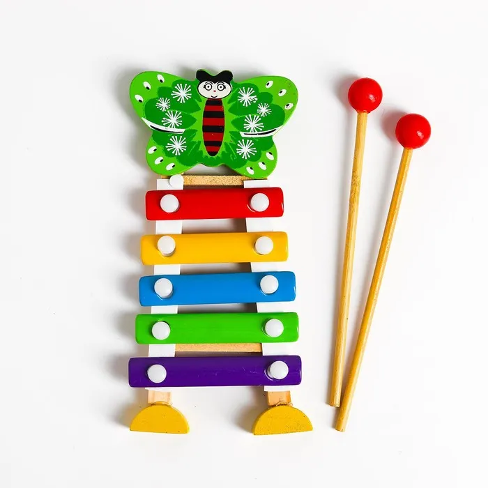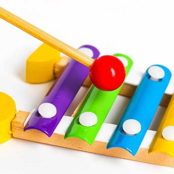 Металлофон — это красочная музыкальная развивающая игрушка, на которой звук извлекается из металлических пластинок молоточками. Пластинки расположены в горизонтальном направлении вдоль деревянного корпуса. Каждый звонкий элемент на металлофоне имеет свой определённый цвет, поэтому ребёнок легко и быстро запомнит мелодии.