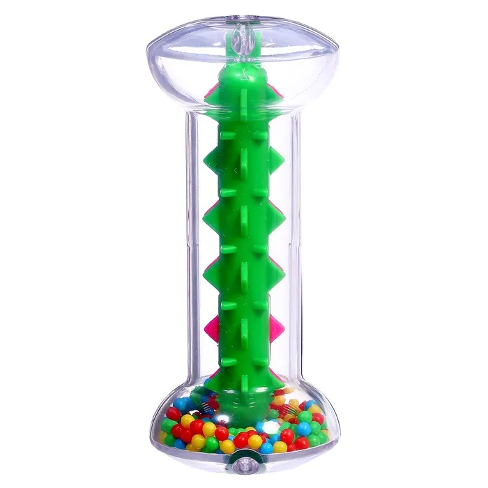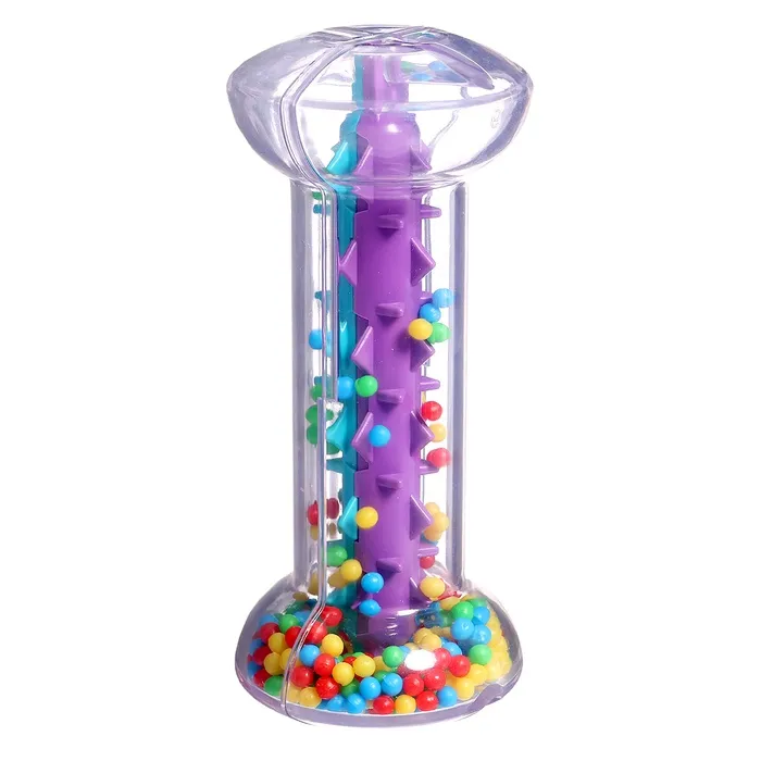 Внутри прозрачного шейкера находятся разноцветные шарики, которые пересыпаются при движении и издают струящийся звук, слегка напоминающий шум дождя. Во время игры шейкером можно петь песни, что будет способствовать развитию творческого начала у ребёнка.