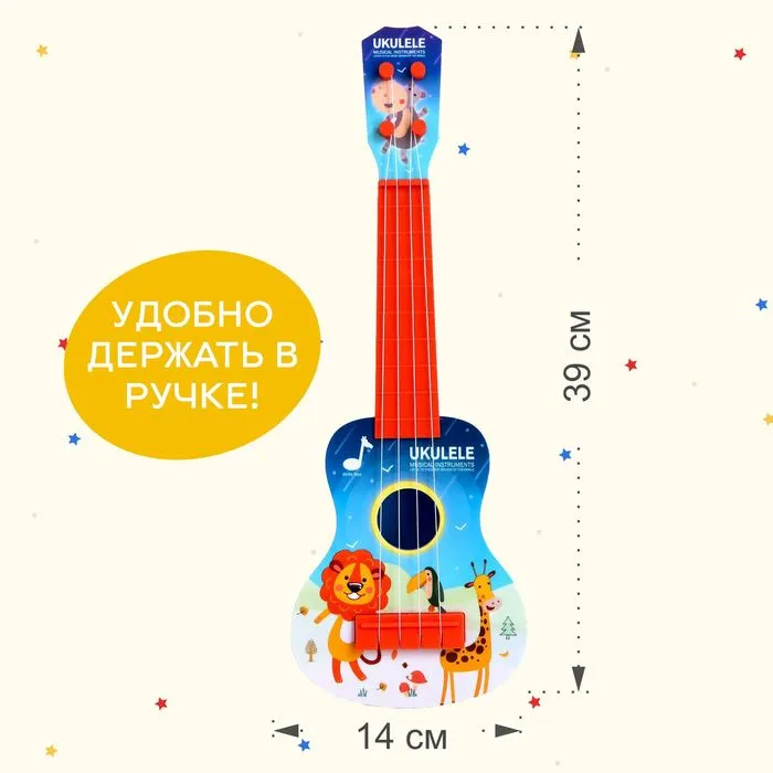 Игрушка музыкальная укулеле «Зоопарк», цвета МИКС — Характеристики