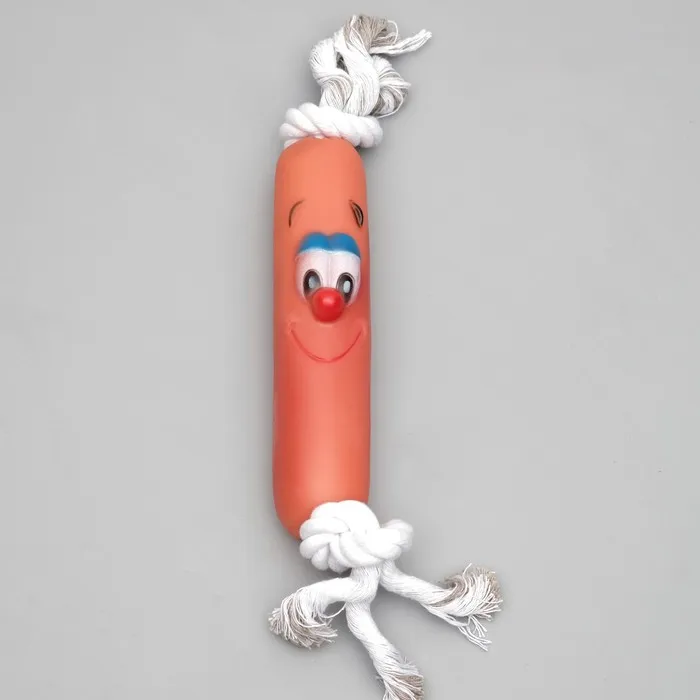 Игрушка на канате "Сосиска" для собак, 30 см (сосиска 14 см)