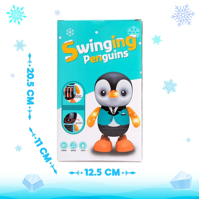 Познакомьтесь с самым весёлым танцором из Антарктики! Пингвинёнок с танцами, световыми и звуковыми эффектами – это очаровательная игрушка, которая подарит вашему ребёнку море радости и улыбок. Яркие огни, забавные движения и две весёлые мелодии делают его идеальным компаньоном для игр и праздников.