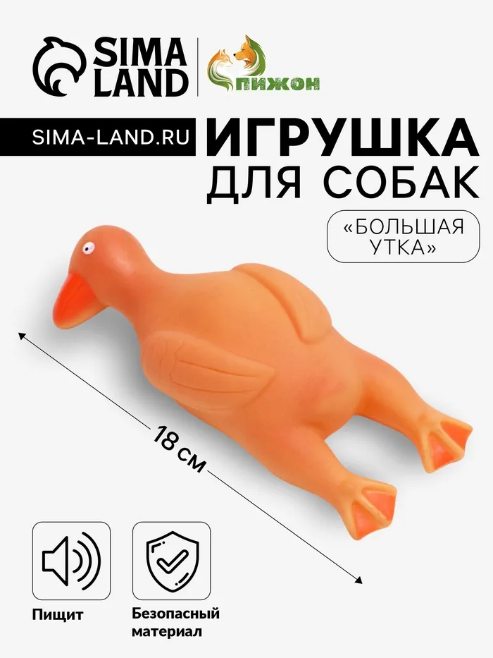 Игрушка пищащая "Большая утка" для собак, 18 см — Характеристики
