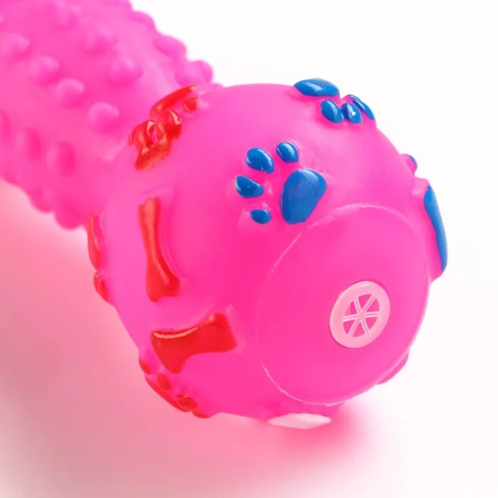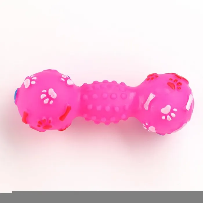 Игрушка пищащая "Гантель с лапками" для собак, 13 см, розовая