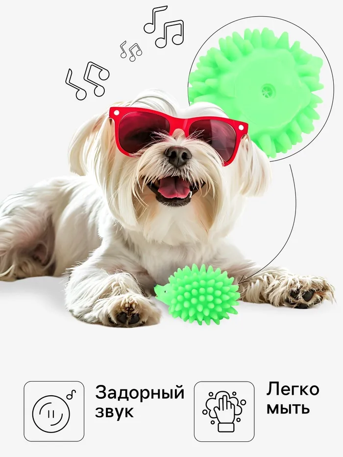 Игрушка пищащая "Ёж" большой для собак, 9 см, зелёная — Характеристики