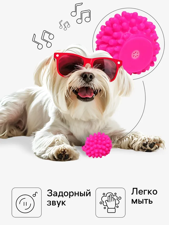 Игрушка пищащая "Ёжик" малый для собак, 6,5 см, розовая — Характеристики