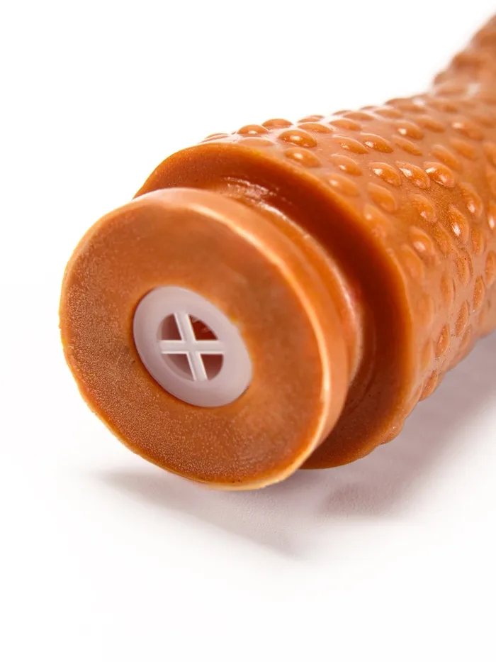 Игрушка изготовлена из безопасного материала и не предназначена для разгрызания. Во время игр виниловые игрушки можно жевать, благодаря этому они массируют дёсны и отчищают зубы собаки от налёта. Таким образом во время игр совмещается приятное с полезным.