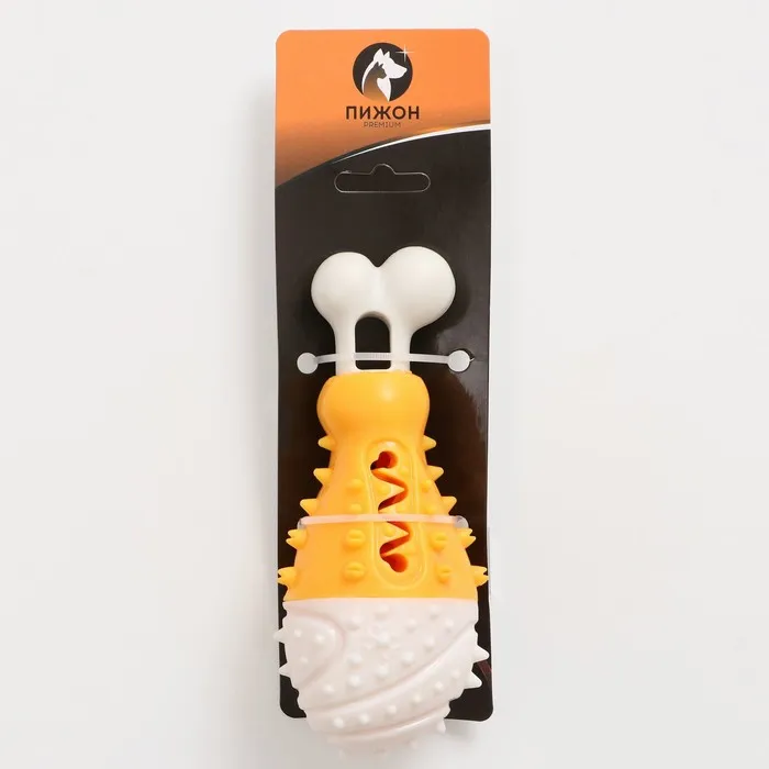 Игрушка под лакомства для собак "Голень" Пижон Premium 17 см, TPR+нейлон, желтая/белая