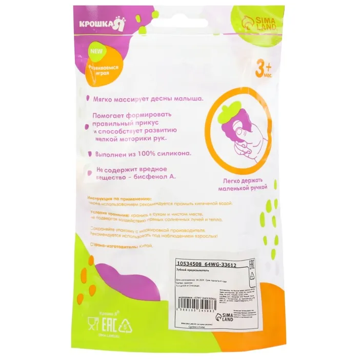 Товар изготовлен из прочного и безопасного материала (силикона) и рекомендован для использования детками с 3 месяцев.